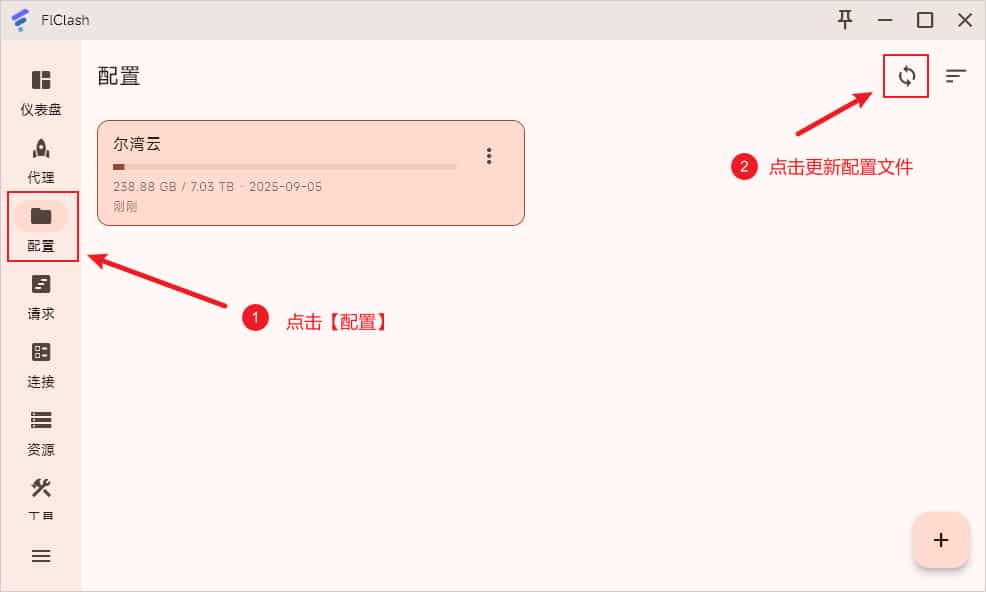 如果需要更新软件的配置文件,可点击软件左侧菜单配置选项卡,点击右上角图标即可更新全部配置文件,如下图所示。